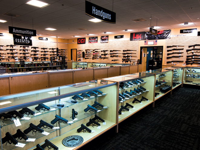There are five separate ranges for public and private use with automatic target retrieval systems, adjustable lighting and the latest in lead removal ventilation. The ranges will handle any pistol ammunition, shotguns with slugs and rifles up to and through .30 caliber. The full-service gun shop can handle Class III transfers and features an in-house gunsmith. Customers can also rent guns for range use and can select from nearly 100 handguns and rifles from many different manufacturers—all clean, neatly presented and well marked.