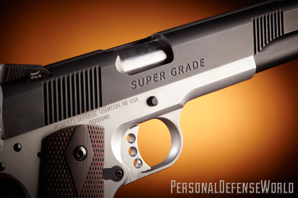 Introducing a new line of .45 ACP 1911 pistols in today’s crowded handgun market isn’t easy, but Roberts Defense may have found a path to success: Build a high-quality tactical pistol in the United States and sell it at a very competitive price. Then make it very attractive. If that doesn’t sell handguns, nothing will. Roberts Defense is a new firm located in Oshkosh, Wisconsin, which began manufacturing handguns in 2011. The company’s motto is “Never Compromise.” Roberts builds its pistols with high-quality components from well-known vendors of custom parts and from parts made at its Oshkosh factory. All Roberts parts are either CNC machined or forged from tool-quality steel bar stock. There are no metal-injection molding (MIM) parts used anywhere in any of the 13 models produced by Roberts.