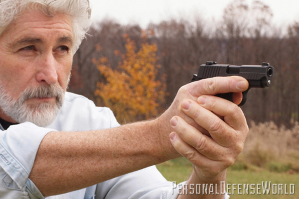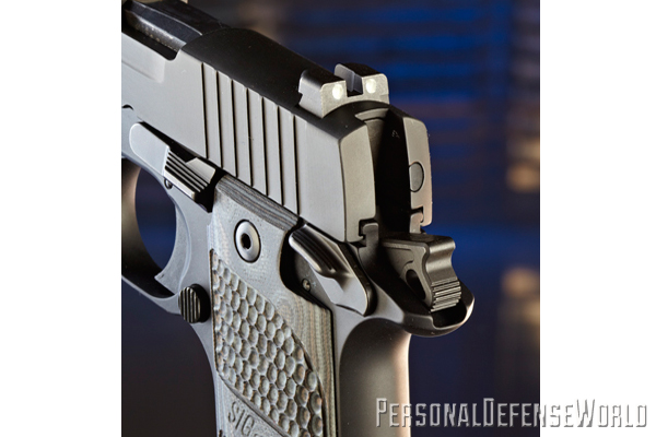Sig Sauer raised a few eyebrows back in 2009 when the legendary Swiss armsmaker unveiled the P238, a subcompact semi-auto chambered in the popular .380 ACP caliber. The innovative little .380 was a very familiar-looking gun to those with a sense of history, a modern iteration of the Colt Mustang Pocketlite with some notable Sig enhancements. Still, much of the P238’s design was firmly rooted in John Browning’s original Colt patents from the early 20th century. In fact, with the exception of its solid camming barrel lug and lock—the foundation of which dates back to Sig Sauer models built in the 1940s—the P238 is essentially a scaled-down variation of the M1911 without a grip safety. The P238 was Sig’s second compact .380 ACP. The first, the P232, was introduced back in 1997, when the only real competition was the Colt Mustang. Fast forward a dozen years and the market is booming with .380s, but few are as elegantly crafted as the Sig P238. This is the smallest .380 Sig has ever designed, and a near match for size with the polymer-framed Ruger LCP and Kel-Tec P-3AT. In fact, the LCP and P-3AT have dimensions almost identical to the P238’s, but after that these subcompact .380s part company. The P238 features all-metal construction, and it’s slim, compact and solid in the hand—with just enough heft to make its recoil manageable. What sets the P238 apart farther from the competition is Sig’s decision to use a stainless steel slide with an anodized alloy beavertail-style frame, rather than a polymer frame like those on the LCP and P-3AT, among others. Sig’s use of a skeletonized hammer adds a customized look to the gun’s chiseled appearance, as does the standard Nitron black corrosion-resistant finish. A two-tone version is also available with a matte stainless steel slide, thumb safety, slide stop and magazine release, which contrasts with the Nitron black frame, grips and backstrap.