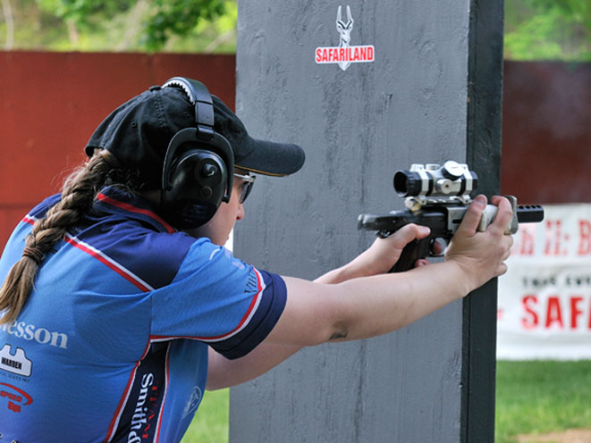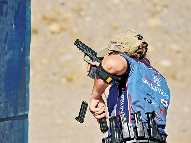 I really enjoy shooting “stock” guns. I like using the same equipment that the general public has—if I have to replace something, it can be found quickly. I use a Smith & Wesson Performance Center M&P Pro Series 5-inch gun with Federal Premium American Eagle ammunition. I prefer to shoot 9mm, a very popular caliber in stock divisions. I used to shoot .45 ACP, .40 S&W and .38 Super, but find I can shoot more with less fatigue with 9mm.