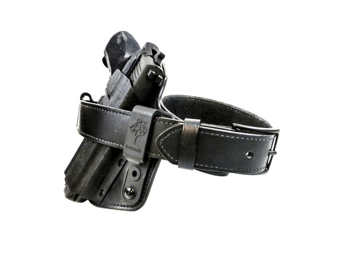 The Remora “No Clip” IWB holster does not need a belt. The outer skin of the holster is a rubberized, non-slip material that clings to fabric. I’ve tucked a Glock 21 in the Remora holster and then slipped the rig into my waistband and can attest that the weapon stays put.