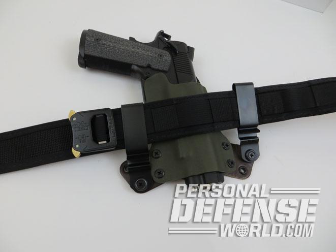 The first thing you need is a really good belt. I’m not talking about a belt that you picked up at a flea market that has “Bad To The Bone” or “Good Ol’ Boy” stamped on it with a screaming skull belt buckle. Hiking up your drawers to reposition your concealed weapon every few minutes is unacceptable. A good gun belt is a belt that is wide and sturdy. The buckle needs to stay buckled, even if you scramble over a chain-link fence or belly crawl. A holster needs to be accessed in a hurry, so it needs to stay put in a consistent place on your hip. If you pair a holster with a lousy belt, you will have inconsistent draws and probably be fumbling when you should be shooting. A holster should hold the pistol close to your body, allowing the print of the pistol to blend with the lines of clothing and your body type. It should also offer a degree of comfort to avoid chafing skin, protect the weapon from perspiration, and be easy to put on and take off. Here are some holster/belt pairing choices I have used for everyday carry.