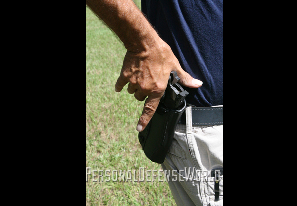 With IWB carry, the gun butt may be tighter and flatter against your side than with OWB carry. Make sure your fingertips dig between the inside grip panel and your body to take a firm drawing grasp.