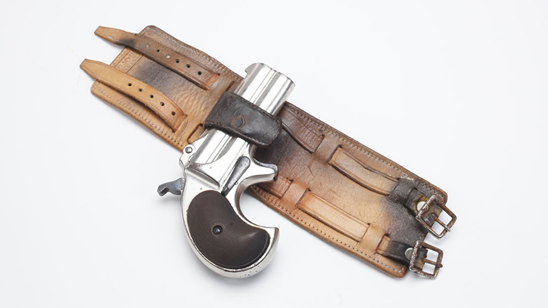 Originally designed for use by the upper class in metropolises like Chicago or Kansas City, the cane or walking stick became a popular platform for concealing a weapon of some kind. Sword canes were already in use in both Europe and the U.S. Remington came out with a gun cane in 1866. Hiding a .22- or .32-caliber, single-shot, percussion-cap gun that used the cane as its barrel, it would fire either a bullet or shot. Other variants from competing European gun-makers came in .410 gauge or fired pistol cartridges in .40 caliber and 5mm.