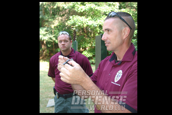 Cramerton’s captain of operations, leader of the Cramerton SORT, firearms instructor and certified GLOCK armorer Rodney Robinson conducted the Glock 22’s rollout. Stressing the need to obtain a positive and consistent grip, Rodney showed how easy it was to remove and replace the different-sized backstraps included with every Gen4. He made sure that everyone understood the importance not only of attaining a firm, comfortable grip, but also the necessity of obtaining an optimal length of pull, which ensures that the shooter will correctly index their trigger finger, eliminating the exertion of side forces on the trigger, which degrade accuracy.