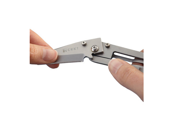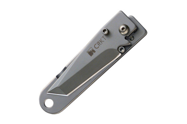 The CRKT K.I.S.S. Folding Knife is a revolutionary high-tech statement with its Tanto-inspired blade and bead-blast finish. The acronym stands for “Keep It Super Simple.” The folding knife is precision fine blanked for superior fit and smooth operation. Like all folding knives in the K.I.S.S. family, knife designer Ed Halligan’s unique two-piece construction features an integral frame lock, and a breakthrough design which seals the cutting edge against the handle.