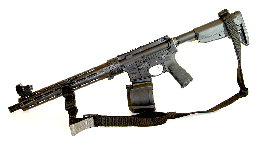 Using a finger-operated lever to depress the follower, the D-60 can be loaded one at a time or with a military AR-15 charging guide and chargers. It can also be disassembled for cleaning if necessary. There is even a window to count your remaining rounds. The D-60 is accordingly heavy, but there can be times when it is advisable to have more ammunition on the gun than in pouches. For that extra weight, adding a good sling is wise. I attached a Blue Force Gear Victory sling to the BCM buttstock, but there was no sling mount on the Faxon handguard, so I used one of Blue Force Gear’s ULoops.
