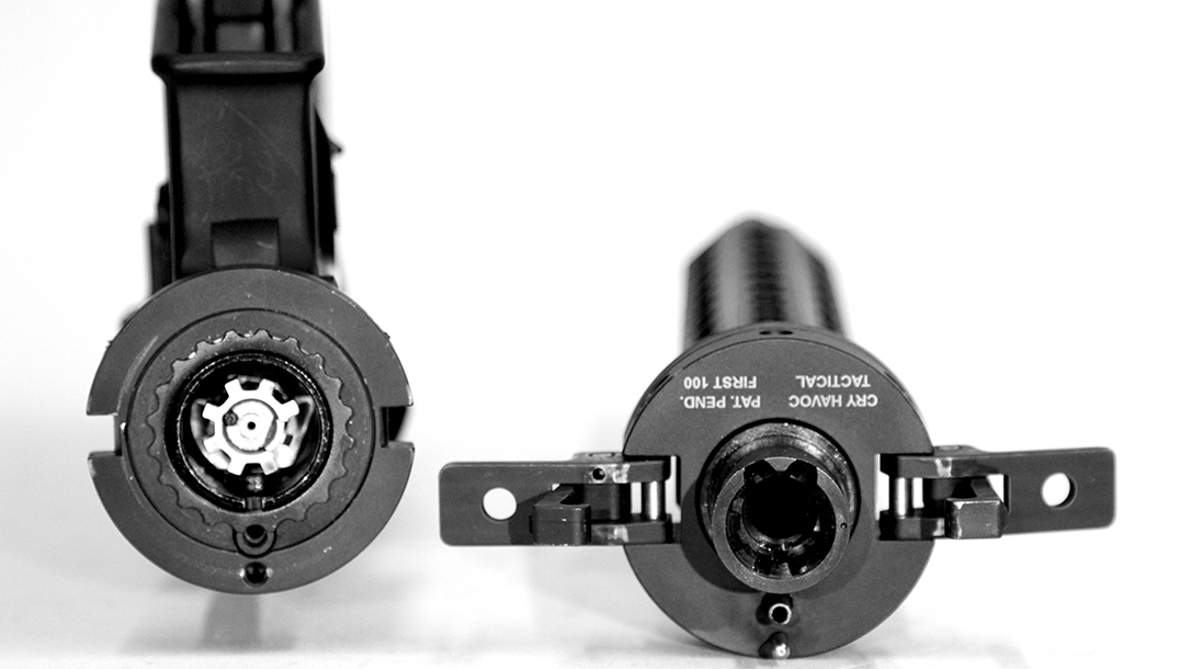 Now there is at least one system out there that allows you to swap barrels in about 30 seconds while providing superb accuracy and a return to zero. It is the Quick-Release Barrel (QRB) kit from Cry Havoc Tactical of North Carolina.