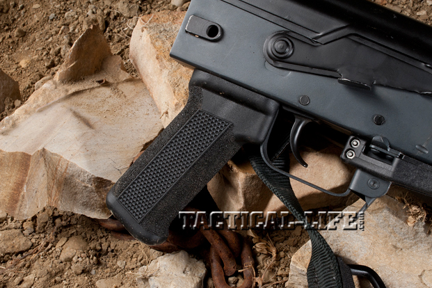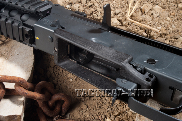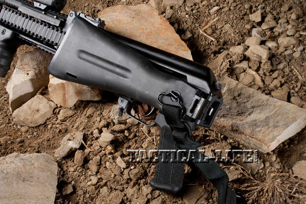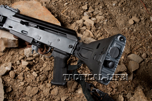 What sets apart the A3 GunFighter G4 AK is the amount of product development, field-testing and crossover support (training and manufacturing) the weapon receives from other CSS entities. CSS offers various packages to cater to customer needs. The G4 I tested further breaks from standard AK-fashion by eliminating the factory handguard and going with an Ultimak railed forend. The existence of multiple rails is beneficial for those who need to add mission-essential gear to their rifles. The G4’s overall length is 34.5 inches (26 inches with the stock folded) and weight is between 7.5 and 8 pounds. The simplest ideas are often the best ones. CSS’ AK Lightning Bolt, part of the GunFighter Series AKs, is one such idea. One of the most common complaints of the AK relates to the bolt handle, situated on the right side of the rifle. The handle often makes it difficult for right-handed operators to efficiently work the bolt handle during reloads or malfunction drills with the off-hand and simultaneously keep the rifle shouldered and on target. The rifle and shooter’s attention must be brought off target to work the action. Many will retort that this is splitting hairs, considering the number of AKs produced and their battlefield record. But it is worth addressing. The AK Lightning Bolt moves the bolt handle to the left side of the rifle. The existing bolt is placed inside the new bolt carrier, featuring a left-handed bolt handle. A new, re-configured top cover plate is also installed, to accommodate the left-sided bolt. The new top-plate design increases ventilation in the receiver area, via the raceway that is added for the left-handed bolt. CSS’ AK Lightning Lever is another nuanced product that enhances AK performance. By replacing the stock AK safety lever, the Lightning Lever allows a shooter to manipulate the safety without having to remove his or her hand from the AK’s pistol grip. This is an important benefit in weapon manipulation. As Anthony says, “Why not give yourself more chances to succeed?” When you combine an AK Lightning Bolt and an AK Lightning Lever, not only do you speed up your reload and simplify your manual of arms, but now you can run the gun’s safety with just one hand—a huge advantage if you’re injured.