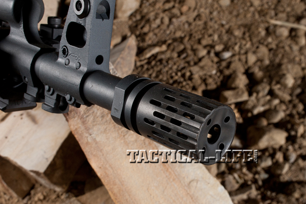 CSS offers AKs chambered for 5.45x 39mm, 7.62x39mm and 5.56x45mm—the G4, G5 and G6 respectively. For this article, I tested the G4. CSS also offers AK users the opportunity to send in their existing AKs for upgrading. Navarro is developing CSS as a “custom” AK manufacturer with AKs available off the shelf. Customers won’t have to wait several months for a custom build, which is currently the norm. How is this accomplished? CSS offers a limited number of choice options, streamlining the process. CSS has production, coating, fabrication and engraving sites located within 3 miles of each other, making for very rapid production times. Aesthetically, the G4 gets your attention immediately with its 14.5-inch barrel and pinned flash suppressor/muzzle brake. CSS removes the barrel from the receiver, cuts the barrel down, re-crowns and re-chromes it, attaches the Battlecomp AK (AKBC) muzzle brake and a rail system, ceramic-coats the rifle, reassembles it, and adds XS tritium sights. My test sample was fitted with an AK-100 series folding stock—a solid polymer stock comes standard. The customer receives a rifle ready to run as soon as the box is opened.