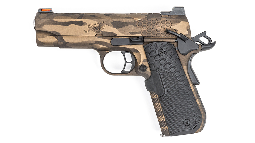 Hillbilly 223’s custom-coated Kimber KHX Pro is a carry-ready 1911 if I have ever seen one. Utilizing one of the most popular Cerakote colors ever produced, burnt bronze, Boyd and the boys created what they are awesomely calling “Ballistic Bronze” camo, which is a combination of the same bronze color mixed down multiple times to show the versatility and potential of working with only one color.