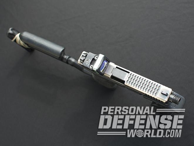 The final step was coating the slide in nickel-boron for protection from the elements. I’ve worked with this coating for years and can personally attest to its prowess at defeating most abuse. However, it’s important to understand that unless every metal component of the weapon is coated in nickel-born, you’re going to cause a lot of wear on the areas that don’t have lubricant between them and the nickel-boron-coated components.