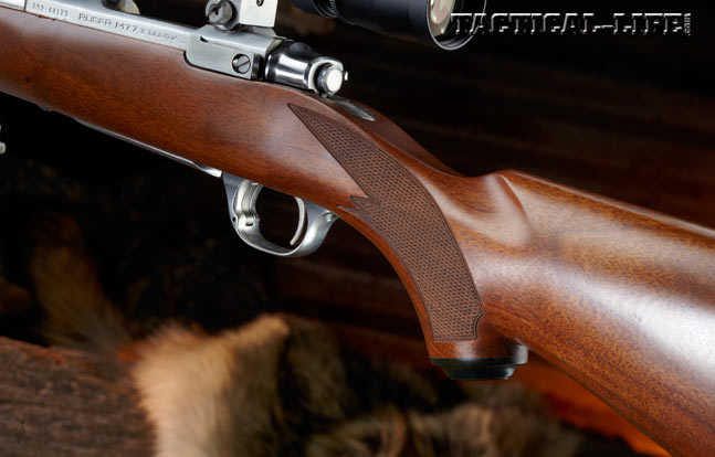 The American walnut stock and brushed stainless steel on the Ruger M77 International are pleasing to the eye. The stainless steel bolt knob is another bonus.