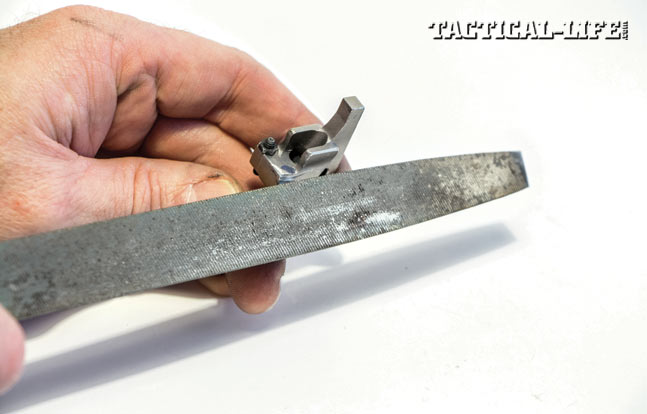 “The Timney trigger for the Ruger Mk II action is easy enough to install, but it requires that you file some material away from the trigger where it interacts with the safety…”