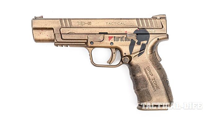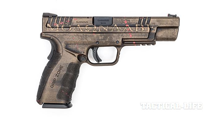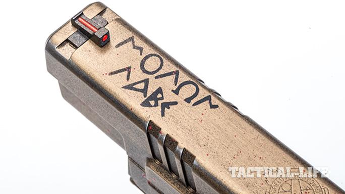 To that end, I recently reached out to two custom coating specialists: Boyd Lemons of Hillbilly 223 Urban Finishes and Amy Lauer-Potaczek of Lauer Custom Weaponry. The idea was to give them each a gun, in this case a 5-inch-barreled Springfield XD Mod.2 in 9mm, and let them do whatever they wanted to it to fit the “molon labe” theme. Molon what? We’ll get to that in just a minute.