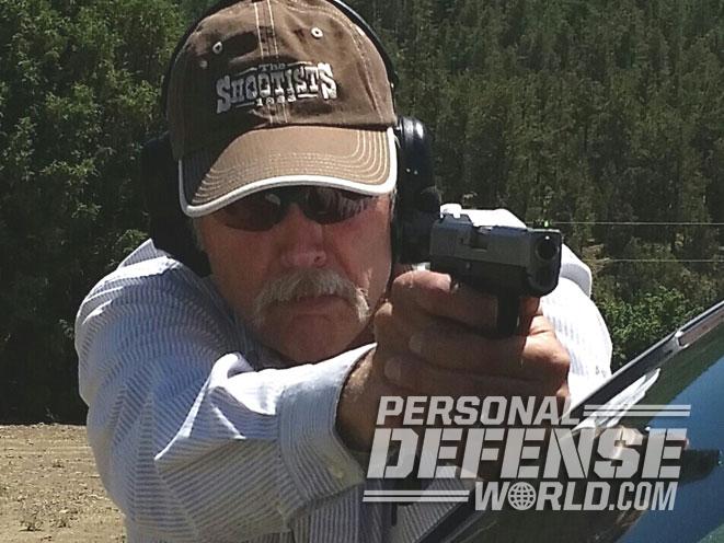 Since my second round of testing was being done on a range that had some steel targets, I pulled my car around to where I could use it for cover and did some practical shooting exercises at a swinging steel circle at about 10 yards. I fired from the front of the car, from the top near the windshield and from around the rear of the car. Hits were registered on the 8-inch-diameter steel plate with outstanding regularity with all of the test loads. All magazine changes were quickly accomplished, the sights were easily acquired, a firm grip was maintained, and all with zero malfunctions.