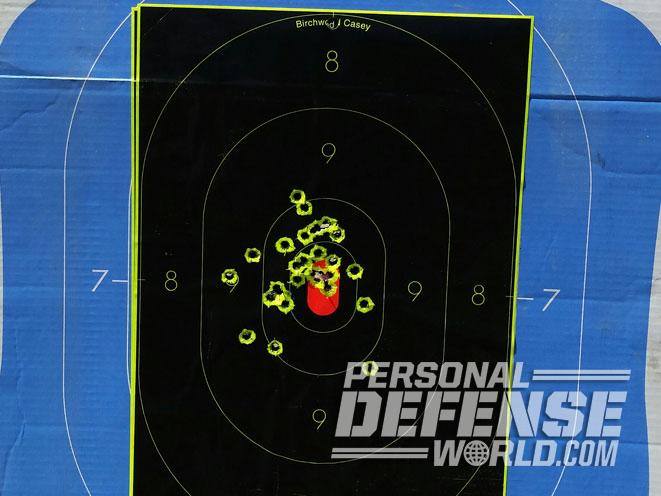 Again, I put on my pancake-type holster, mag pouch and then went back through the 30-round combat course. While my score with the Remington-UMC ammo was slightly better this time at 296-15X out of a possible 300, I found that overall the “pattern” of the shots was much tighter both in the center-mass area and the head of the B-27 silhouette.