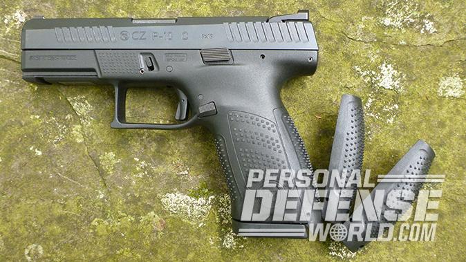 The P-10 C has good ergonomics, starting with a comfortably shaped grip with very functional texturing that gives you a solid hold. You can also change out the backstrap by simply removing a single roll pin with a punch. Three different backstrap sizes are provided to enhance comfort and facilitate a straight-back trigger pull.