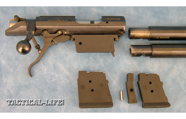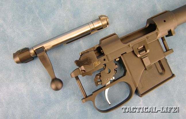 The fire control system is impressively sturdy, fully worthy of a centerfire action in my opinion. It’s a simple arrangement similar to the Winchester Model 70 trigger. As such, it has a wing-type safety rotating horizontally within the shroud at the rear of the bolt. Pushed forward, it withdraws the cocking sear and firing pin unit from engagement with the trigger sear. With the safety housed in the bolt shroud, the trigger mechanism itself is fully exposed—like the Model 70 and military Mausers. Trigger adjustment is for tension only, and straight out of the box, my test gun’s trigger broke at 3.5 pounds. I was able to get it down to 2.5 pounds before coming to the end of the adjustment range. At that, it was crisp, but there was a noticeable amount of creep.