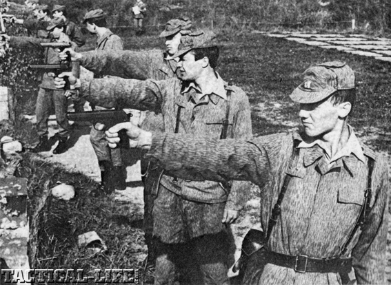 I set several targets out at 25 yards and proceeded to fire a series of five-shot groups from a rest. While the pistol had a fairly decent trigger pull with a bit of take-up before a crisp let off, my 60-something-year-old eyes found the minuscule sights a bit of a trial. Launching 86-grain bullets at relatively high velocities produced a fair amount of muzzle blast, but felt recoil was moderate, and accuracy was good with most of my groups coming in around 3 inches—more than acceptable for any issue military pistol. Ejection of spent cases was positive—one might say impressive—with them landing about 20 feet to my right. Out of curiosity, I ran five rounds of the Sellier & Bellot ammunition across my chronograph and got an average velocity of 1,616 fps, which puts it in the ballpark of the 7.62mm náboj vzor 48’s velocity.