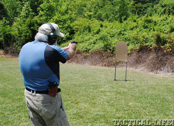 I then set up a D-1 target at 7 yards and ran the Czech pistol through a series of offhand drills. While I was able to keep all of the rounds thus expended in the target’s higher scoring zones, the vzor 52’s small sights and rather steep grip-to-frame angle did not lend themselves to rapid-fire shooting. I found the heel-type magazine release difficult to manipulate, and magazines had to be dragged out of the grip once released. I never could comprehend why so many European military and police pistols were fitted with these? I experienced a few smokestack jams during these drills, but being that this was an unissued pistol, I don’t really consider it problematic. Such malfunctions can be expected from any out of the box handgun until it is properly broken in.