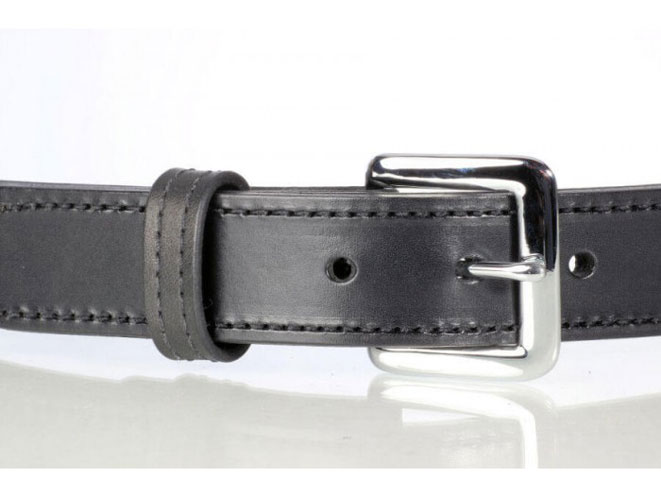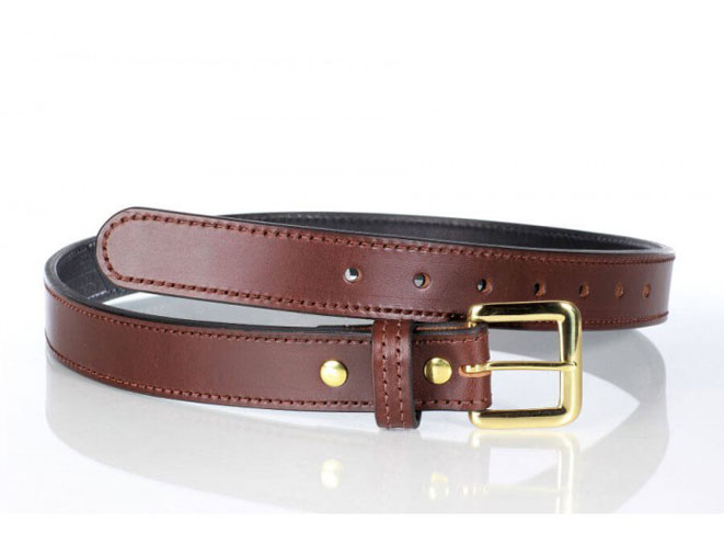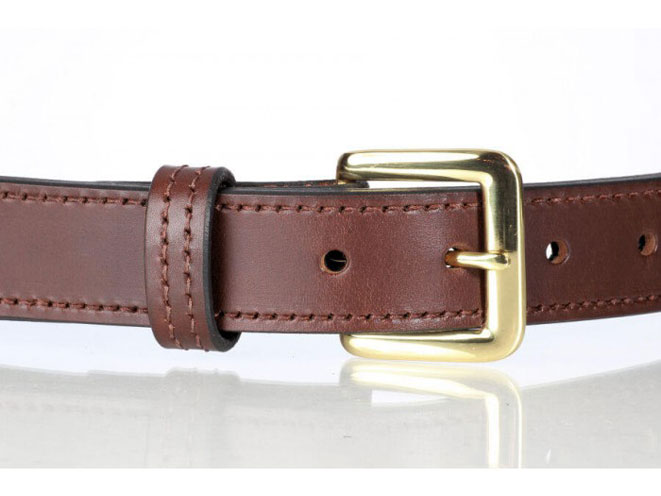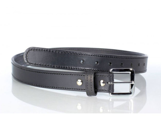 The Investigator enables the end user to easily carry concealed in a suit or dress pants. It is 1.25″ wide and made of 3/16″ thick premium stitched bullhide leather. It also boasts a dual layer construction. This belt comes with a choice of four buckle styles, and users have the option of adding an internal metal stiffener for added support. The manufacturer suggested retail price is $69.99. See below for a rundown of features for the Investigator dress gun belt.