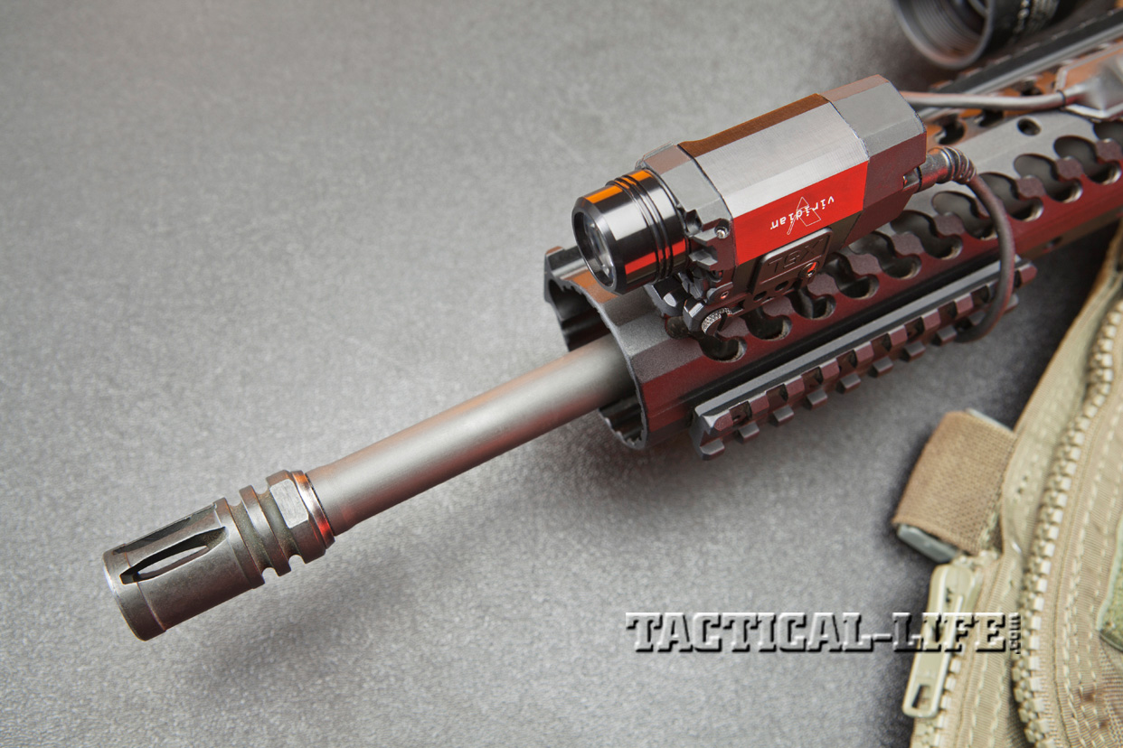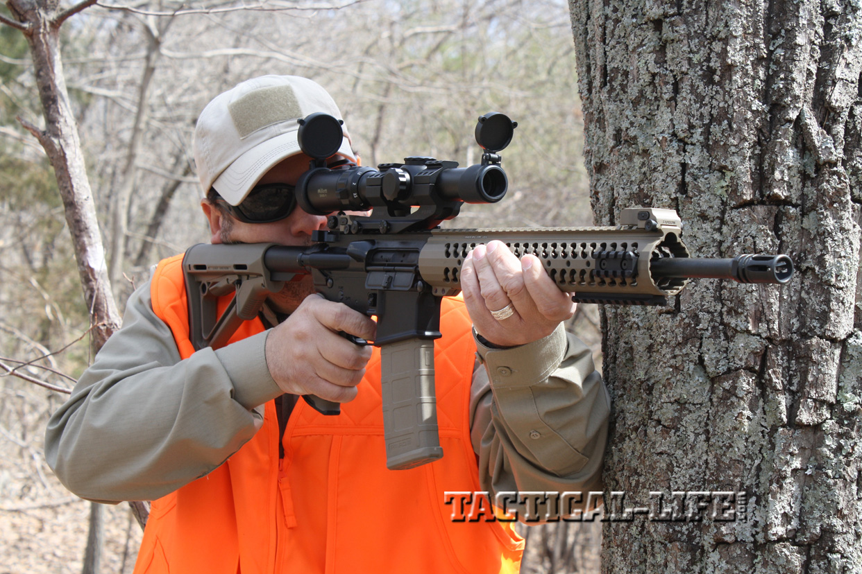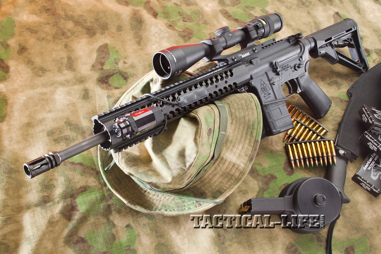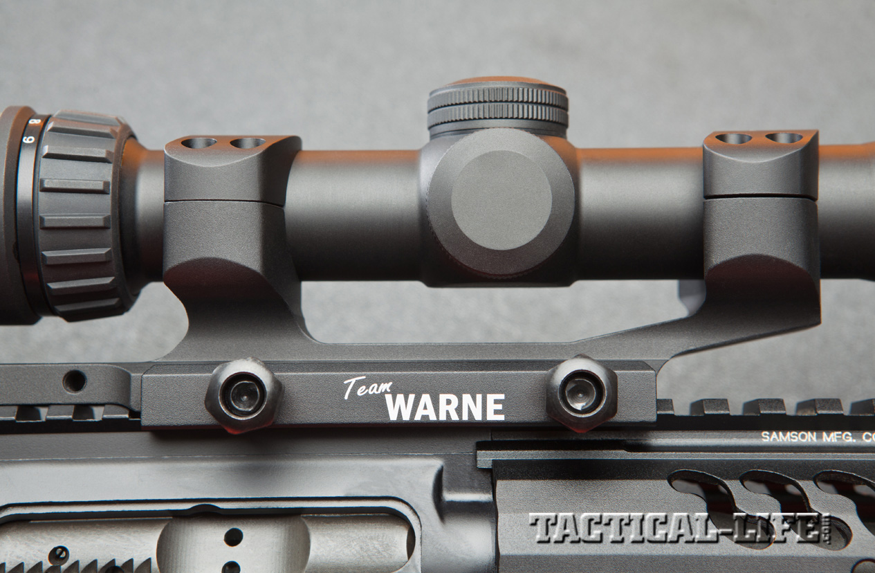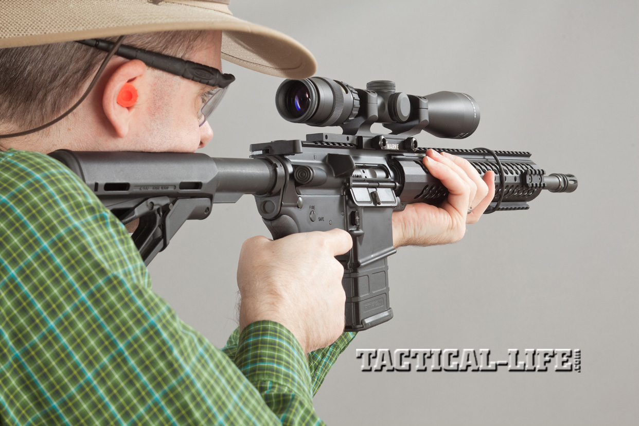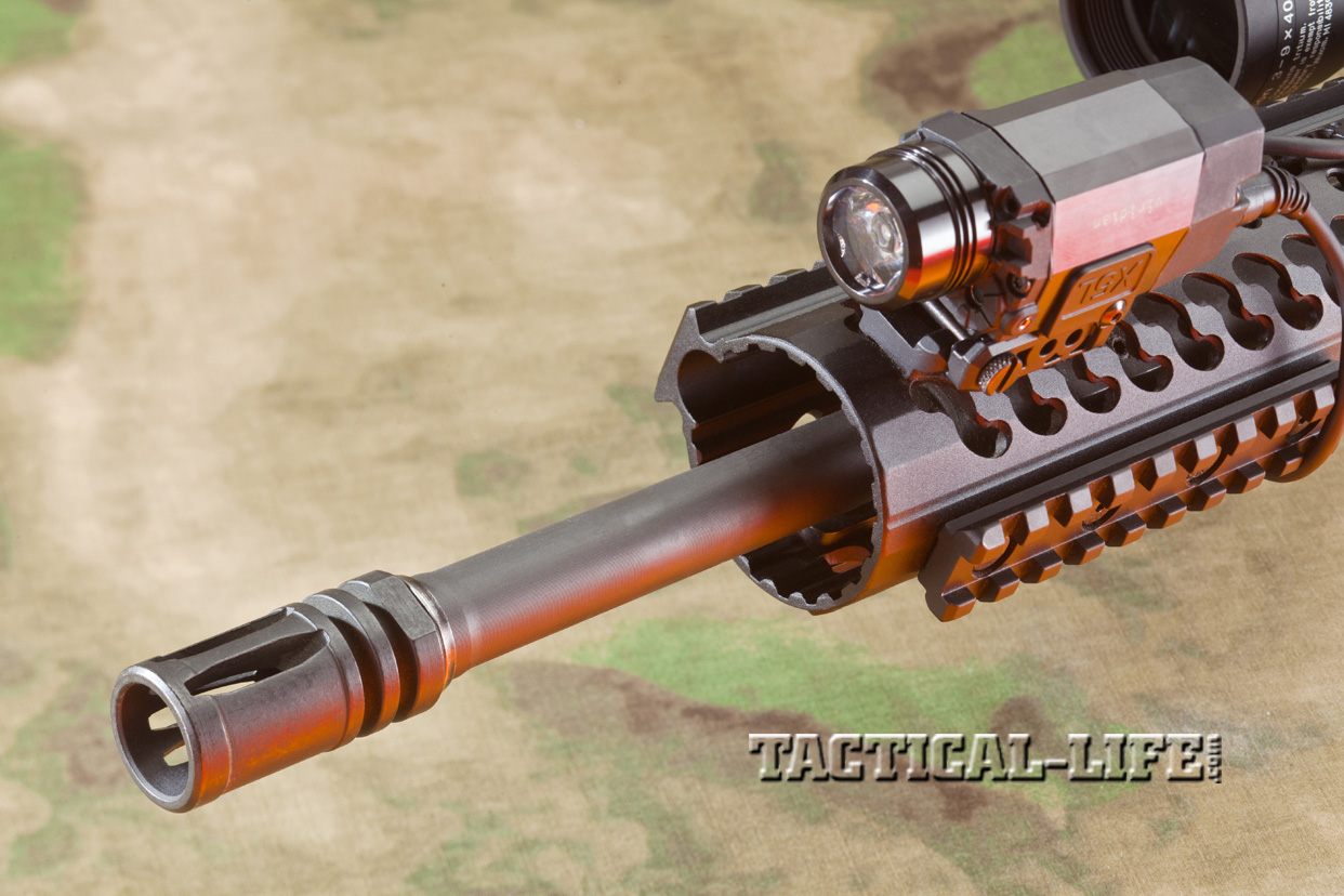 The rifle also features a Samson low-profile gas block and mid-length gas system, which is 2 inches longer than that found on a carbine and provides less dwell time, or the amount of time the bullet spends in the barrel after it passes the gas tube and before it exits the barrel. This shorter dwell time reduces the amount of gas and fouling that goes back into the chamber to operate the bolt, helping to reduce wear and tear on internal parts as well as perceived recoil.