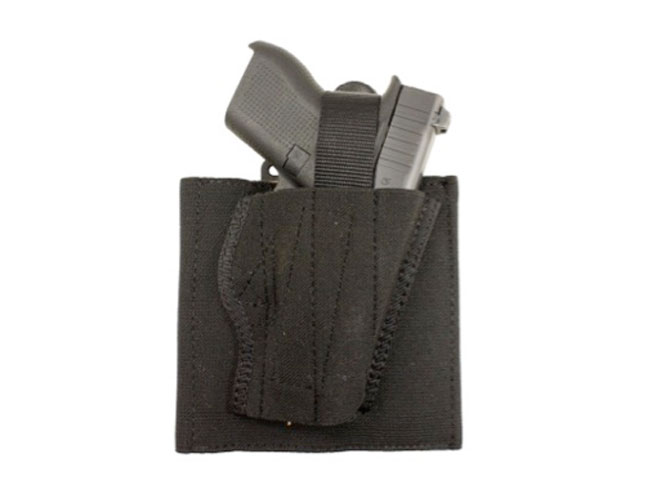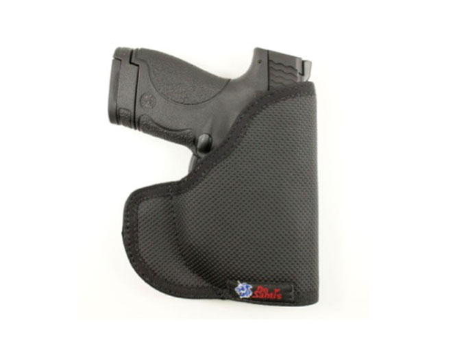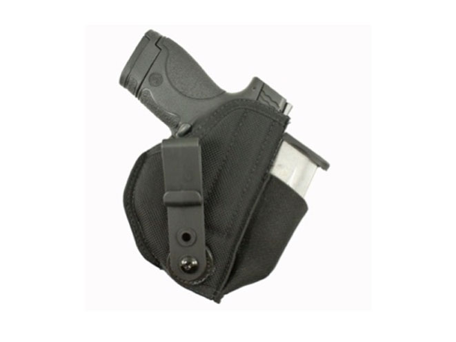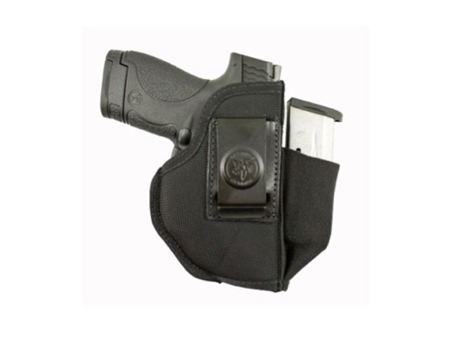 The #M24, Tuck-This® II is built from heavily padded 1050D black Ballistic nylon and lined with slick pack cloth. The widely adjustable belt tab can swing from cross draw to FBI-strong side carry. The tab allows the shirt to be tucked down in between the gun and trousers affording nearly total concealment. Accommodates belts up to 1 3/4″ wide. Retail price is $41.99. Click here for more product info; http://www.desantisholster.com/TUCK-THIS-II.
