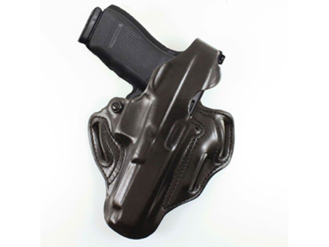 Meanwhile, the Speed Scabbard holster is designed for plain-clothes professionals who prefer to use a holster without a thumb break while still providing firearm retention. As the press release points out, this is accomplished with precise molding and a tension screw device on a majority of models. The Speed Scabbard is available in Black or Tan unlined leather, and, like the Thumb Break holster, features 1 3/4″ wide belt slots. The retail price is $72.99.