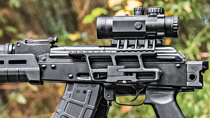 Above the trigger and pistol grip is a very important but often overlooked component crucial to building a better AK: the side rail. Unlike their Western counterparts, AKM rifles never truly evolved into optics-centric weapon systems. As such, the compatibility with optical gun sights revolves around the side rail mount.