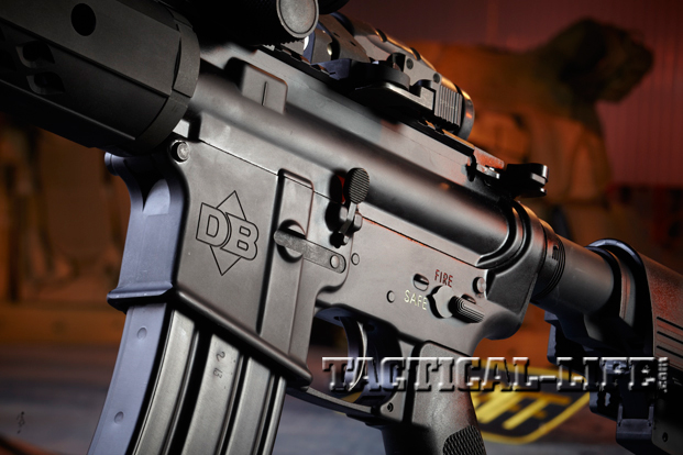 The DB15 sports a T-marked Picatinny rail on its flattop receiver, which is machined from forged 7075-T6 aluminum and is nicely anodized. The T-markings facilitate the removal and replacement of optics in the same place.