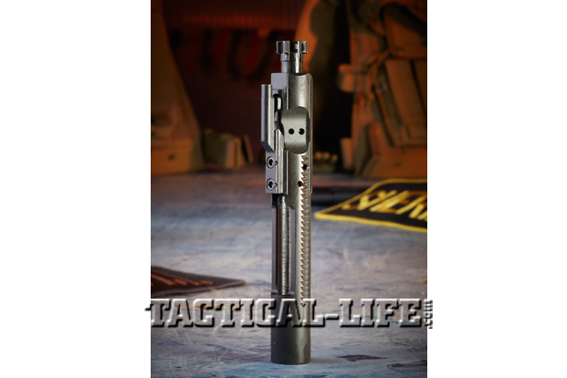 Within the buffer tube are the buffer spring and a standard (not heavy) weight buffer that absorb the energy of the bolt carrier during its rearward travel. Diamondback’s website indicates that the bolt carrier meets military specifications, is shot peened, magnetic-particle inspected and is made of 8620 steel. The all-important gas key screws are properly staked, and the carrier group is manganese-phosphate finished. The gas key and bolt carrier also look like they are chromed lined. These are important features for the officer who might employ the weapon in harsh environments where failure can be catastrophic.