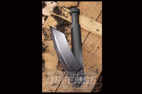 At only 24 ounces in weight and 10 inches in size when folded, Glock’s Entrenching Tool will easily fit in your trunk, the storage compartment on your ATV or snowmobile, or even in your pack. It unfolds to 25.4 inches, which is enough to get some decent leverage for digging. Like the old GI shovel, you can affix the blade at a 45-degree angle to use as pick and break up hard earth if need be. The E-Tool’s blade is of hardened steel with an anti-corrosive treatment (not plastic like you’ll see guys saying on some of the internet boards!), and the handle is an impact-resistant polymer. If you’re worried about a polymer handle, don’t be. First off, Glock makes it, and they know a thing or two about polymers. Secondly, I tested my sample pretty hard and it seemed unfazed by the abuse.
