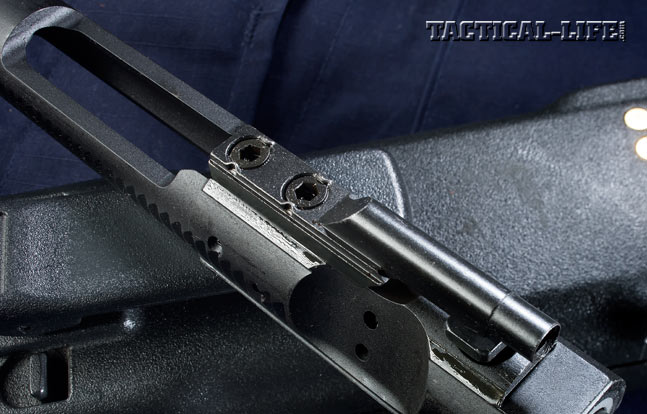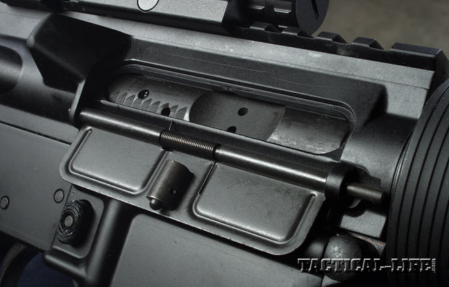 The barrel is high-pressure (firing a proof round that is 20 percent hotter than a normal round) and magnetic-particle inspected—again just as required by military specifications—and sports a chrome-lined bore and chamber with M4 feed ramps. Standard M4 handguards cover the barrel. The Mil-Spec Dragon also comes with the M203 mounting groove in front of the forged, F-marked front sight base, which has an elevation-adjustable sight post. The barrel is finished with a step down and an A2-style birdcage flash suppressor.