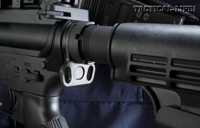 Of course, the Mil-Spec Dragon’s lower receiver is built using a mil-spec receiver extension tube (i.e., government not commercial), which wears a mil-spec, six-position collapsible buttstock. The standard endplate has been replaced with a DoubleStar Double Loop single-point sling adapter.