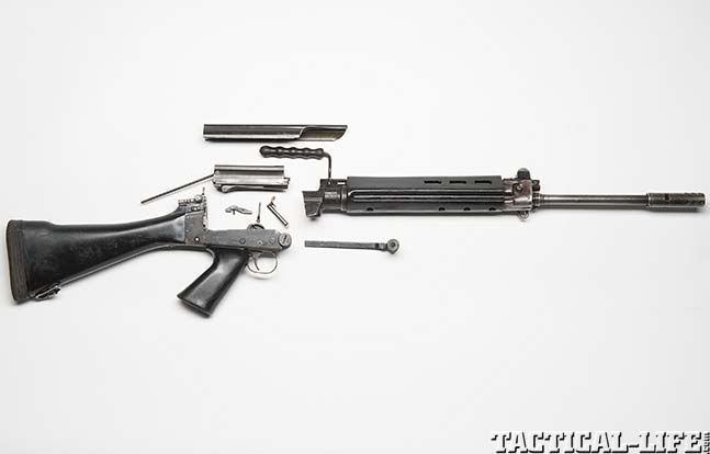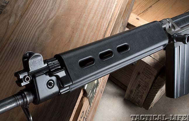 As a result of these efforts, DS Arms is able to provide U.S. consumers with a rock-solid version of one of the most famous military rifles of the 20th century (and beyond, judging from its current use in hotspots around the world). When it comes to military pedigrees, few designs can hold a candle to the FAL-pattern rifle. Developed by the famed Fabrique Nationale (FN) chief arms designer Dieudonné Joseph Saivé, the Fusil Automatique Léger (or “light automatic rifle”) earned the distinction of being adopted by nearly 100 countries during the Cold War era, and seeing service on both sides of many conflicts during that era of seemingly unending proxy wars. In fact, in regards to total numbers produced, the FAL easily outshines the now dominant M16/AR-15 series, and comes in second only to the ubiquitous Kalashnikov in regard to sheer numbers produced.