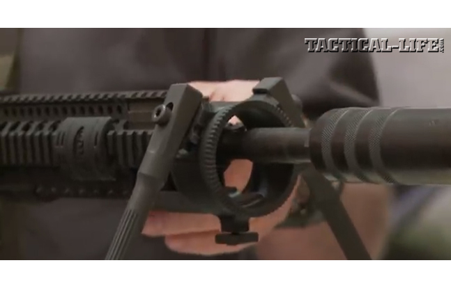 The adjustable legs on this bipod — which rotate 360 degrees — can be turned and extended in virtually any direction, including upside down. The bipod feet will ensure that the accessory remains stable and flat. This new release from EliteIron is attachable to a 1913 milspec rail, spade, or rigid bipod mounts. The all-steel variant of the bipod weighs 2 pounds. There is a lighter version which weighs 1.5 pounds. The Revolution bipod has been designed to accept rifles up to .50 BMG.