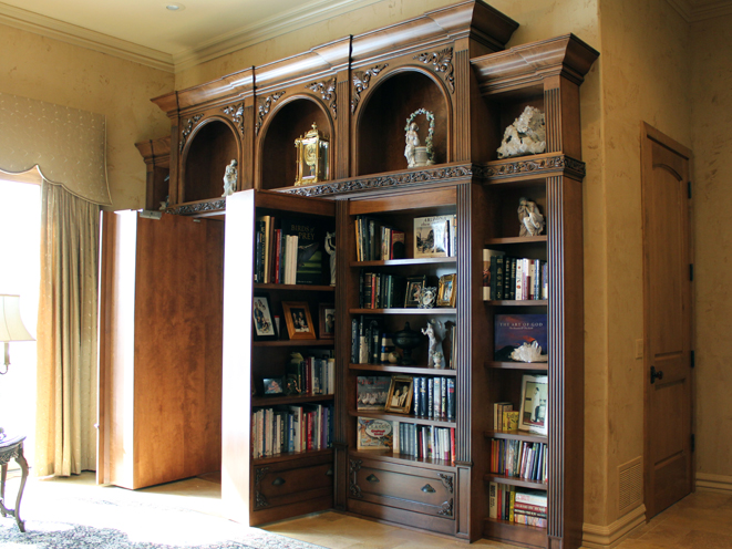 On my tour of the company’s design center, I got a firsthand look at how bookcases and dressers were able to conceal doorways and hiding spaces at the touch of a button. The mechanisms to activate the doors were artfully hidden in features around the room.