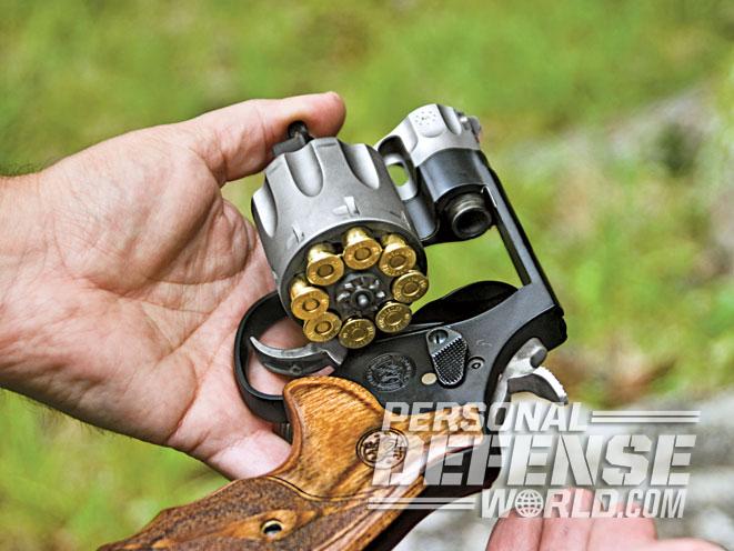 The N-Frame is large. In the old days, making an N-Frame revolver into a concealed-carry weapon meant lobbing off some barrel length. The old steel, square-butt grip frames still wore full-sized grips, and it was still only a six-shooter. Always innovative even with the century-old N-Frame revolver design, alchemists in the Performance Center have created two eight-shooters that are 21st century revolvers made for concealed carry and offer plenty of punch.