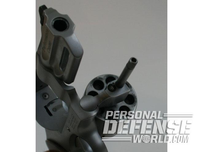The length of the ejector rod on the Model 627 allowed me to really shuck the eight empties. The ejector rod on the Model 327, meanwhile, was short due to the stubby barrel but it was enough to get the empty brass started and allow gravity to do the rest. The Model 327 had more felt recoil with the hot .357 Mag loads since the revolver was so light.