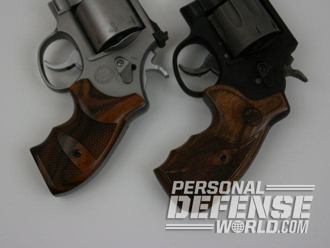 The weight of the Model 627 had a lot to due with its reduced felt recoil, even with its small boot-style grip, which required me to tuck my small finger under the grip’s butt. At 15 yards, both of these revolvers consistently produced five-shot group that averaged 1.5 inches. I ran a combination .38 Special +P and .357 Mag rounds through them.