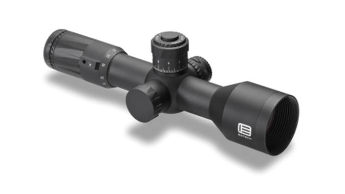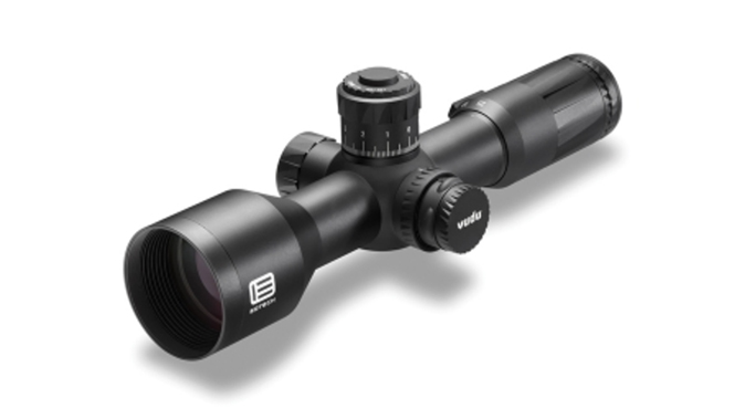 Touted as being ideal for short platform rifles, the Vudu 5-25x50mm measures 11.2 inches in overall length and is one of the shortest first focal plane scopes on the market in this magnification category. The 5-25x first focal plane sports an XC high-density glass, one-piece aluminum body and eyepiece, and EOTech’s EZ Chek Zero Stop feature which allows for fast adjustments and return to zero. In addition, this riflescope includes a locking elevation turret and capped windage turret to stop accidental changes in zero, along with a parallax adjustment out to 1,100 yards to align the focal plane to the target.
