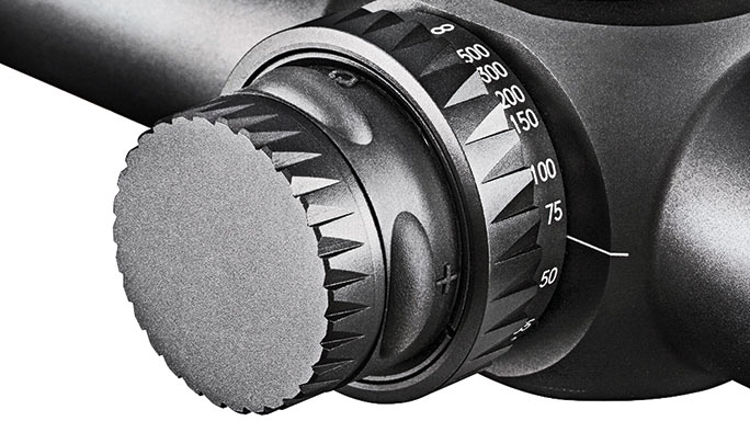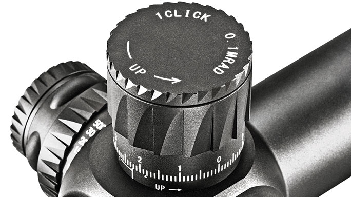 The last piece of this new optics trio is the 3.5-18x50mm. Built around a 34mm tube and a 50mm objective lens, the 3.5-18x50mm is the long-distance model of the team. It has oversized and precision-machined turrets with an EZ Chek zero-stop feature, which lets you quickly dial adjustments and return to zero, even in low-light conditions. The side-mounted parallax adjustment allows you to dial the reticle focus in for the most difficult long-range shots. This scope’s field of view is 7.92 and 2.02 degrees at 3.5X and 18X, respectively. It offers 86mm to 100mm of eye relief at 3.5X and 87mm to 100mm at 18X. Like the other Vudu scopes, users can adjust windage and elevation in 0.25-MOA or 0.1-mil increments, with a total of 15 mils or 50 MOA.