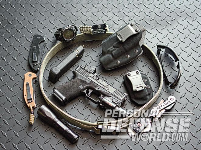A handheld light is an absolute necessity, and a weapon-mounted light is a luxury. Both are necessities to me, but if you can only carry one for some reason, handheld is the choice. Not only does it aid in low-light fire, it can be prepped and ready anytime you are in low-light conditions, allowing you near-instant access to better visual data (like walking by a dark alley). It also provides a deterrent to encounters with unknowns. A blast of light to the face will remove a potential bad guy’s visual horizon and give you a distinct advantage. I carry the SureFire P2X Fury for its well-known lineage of dependability and the superior 600-lumen maximum brightness.