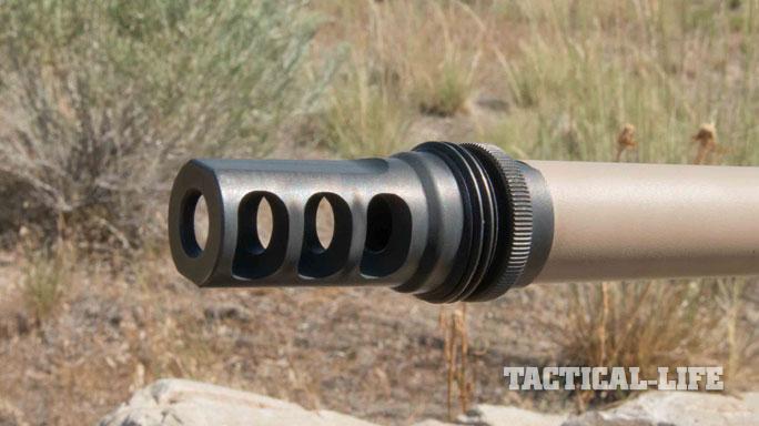 Ambidextrous controls include the safety, magazine release and bolt release. Magazines fit tightly yet perform well and drop free when released. The handguard accepts rails as needed for lasers, night vision or other accessories. SilencerCo’s Harvester muzzle brake helps tames recoil.