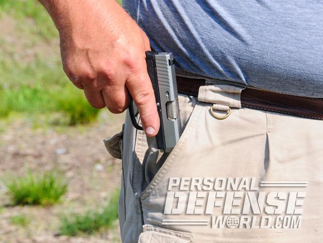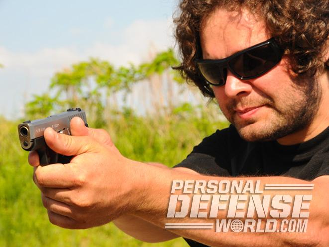 With barrels and sight radiuses as short as they are on .380 ACPs, bringing the gun up to bear with a proper, repeatable grip is crucial. The Kahr has very clear, snag-free sights, and many modern .380 ACPs have quality sights as well. A big selling point of guns like the Glock 42 is that the sights are identical to those on their larger models, but even with advances in design, pointing guns this small instinctively is largely a matter of proper practice.
