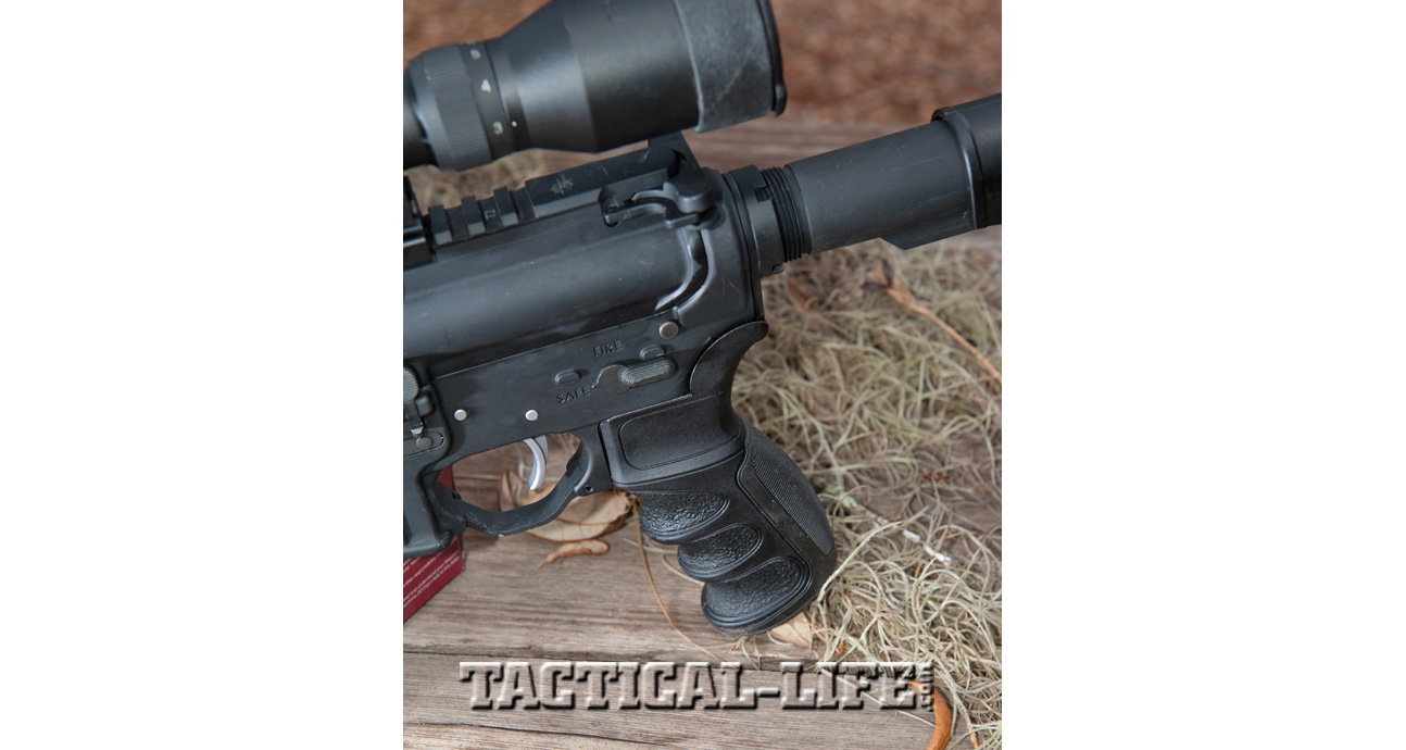 Rifles were supplied by Rock River Arms (RRA). Proven reliable and accurate, these ARs were a solid choice. Equipped with accurate barrels, nice triggers and solid muzzle attachments, they were perfect for the task. Each was equipped with an ATI stock, forend and pistol grip. ATI Strikeforce stocks are comfortable, have adjustable cheekrisers for using scopes, and are easy to adjust. The company’s Scorpion pistol grips are some of the most comfortable on the market. ATI’s lightweight, free-floating forends allow users to add rails where needed. The Forward Stabilizing FSB nose cone allows you to anchor the forend in a doorjamb, fence or tree in the field.