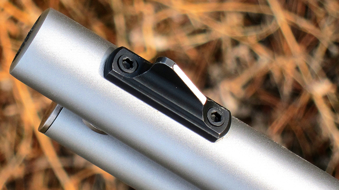 Plan on zeroing your gun at the range with your best load, and don’t expect to be making quick changes in the field without a wrench along. This isn’t a criticism, just an advisory. I’ve used Skinners elsewhere and talked to Andy Skinner personally; he takes his operation seriously and puts out a quality product line. He also offers five different aperture sizes on his www.skinnersights.com site, so you can personalize there, and the front Bearbuster blade is machined from solid barstock at .500”, with options at .570” in all-blue steel, white-line, and brass. Additionally, he can match his sights to any .45-70 load you’ve got, if it falls outside the range of what comes on the Marlin.