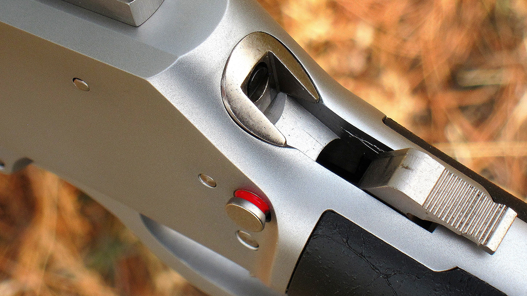 Most of the Trapper’s major components feature stainless steel. However, the trigger is one of a few smaller parts utilizing nickel plating. When you grind or file down through plating in rounding corners and edges, you can begin a degradation process with the rest of the plating on that part. There are, fortunately, aftermarket triggers available if you need to look for them. The hammer is through and through stainless, so that’s easy to clean up yourself at home with a fine diamond file. Further, between hammer, trigger, and lever, those are your major interface with this levergun, and that interface should not cost you skin cells.