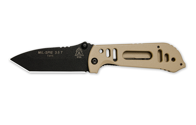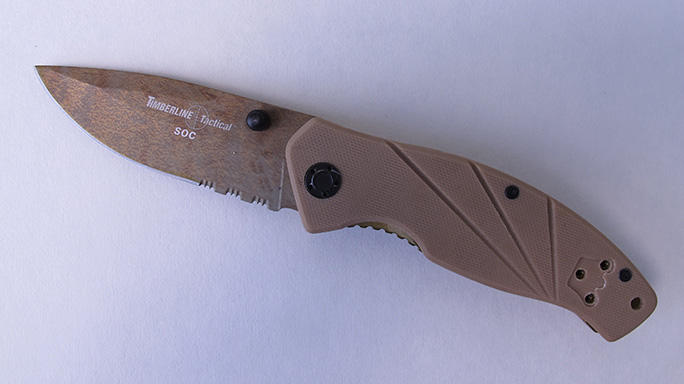 Timberline’s Tactical SOC folder was designed to provide a tough-as-nails everyday work knife of practical size at an affordable cost. It is available in a variety of colors, including coyote brown. There are also partially serrated or straight edge options in each blade finish. (gatcosharpeners.com)